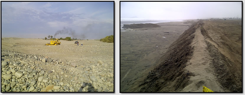 LIMPIEZA DE CAUCE DE RÍOS: Direccionamiento de cauce de rio hacia rutas seguras para evitar descargas no deseadas con el uso de tractores de orugas y excavadoras.