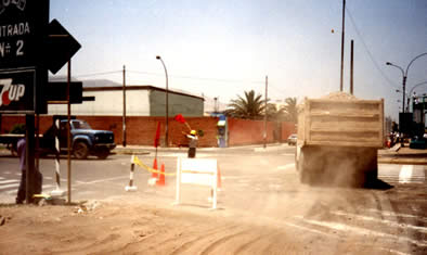 - 32 Km. de carreteras de acceso a áreas de galpones sobre terreno arenoso, hasta nivel base de afirmado h=15, 30 y 40 cm.